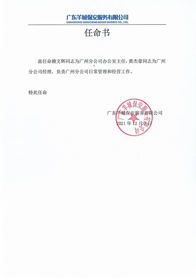 中国·618永利(集团)有限公司-官方网站关于黄杰豪与赖文辉的任命书正式通知